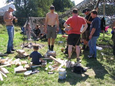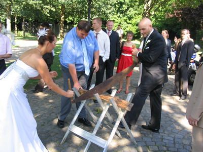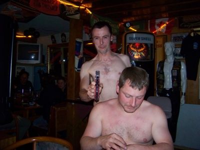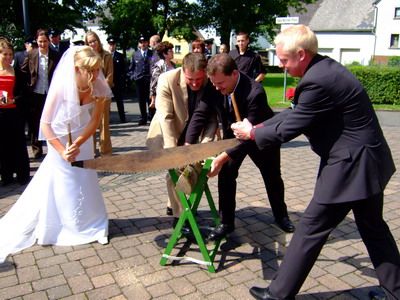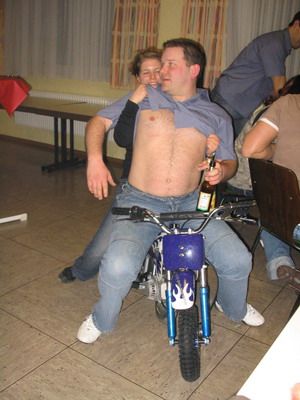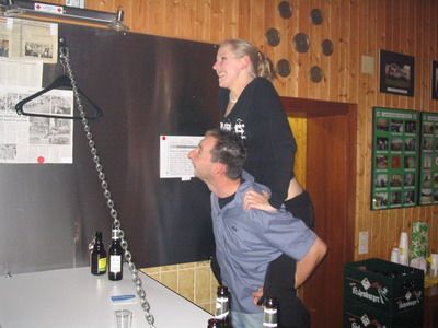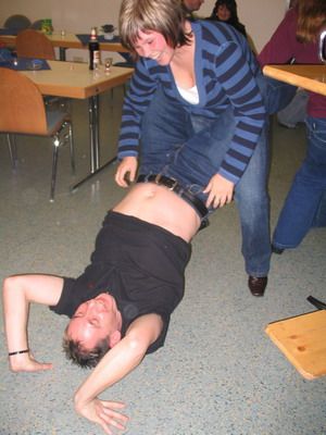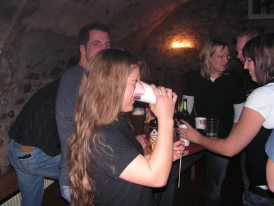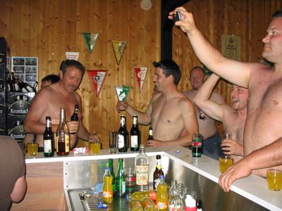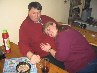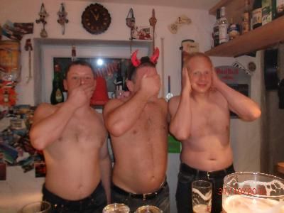 und beim Knopfannähen. Der Verlierer muß einen Schnaps trinken.