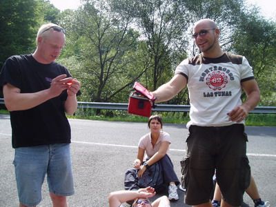 Irgendwas ist ja immer!!!! Ende der Heimfahrt für Dirk. Das mir bloß keiner mehr ne XJ kauft!! 1.Mai 2007