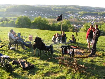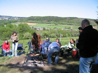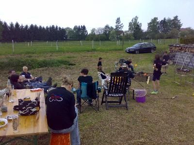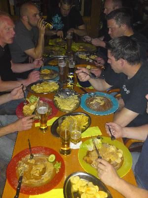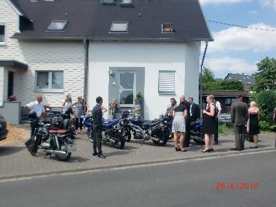 Unser Stammbikertreff im Wispertal 4x Currywurst mit Pommes, 2x Schnitzel mit Zwiebeln, Pilzen und Käse überbacken, Spiegelei, Pommes und Salat. Bikerparty Dreisbach 2010 Donnerstags beim angrillen Hochzeit Alu und Andrea